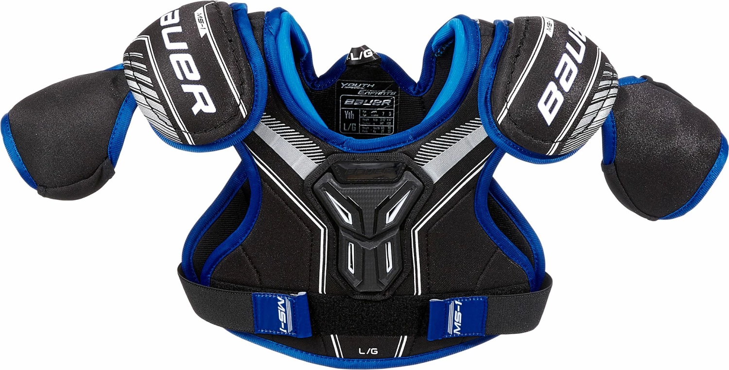 Engineered to provide full coverage with low profile shoulder caps the Bauer® Youth MS1 Hockey Shoulder Pads offer protection and mobility. These shoulder pads are perfect for a recreational athlete of any level. Stay comfortable and protected all game.