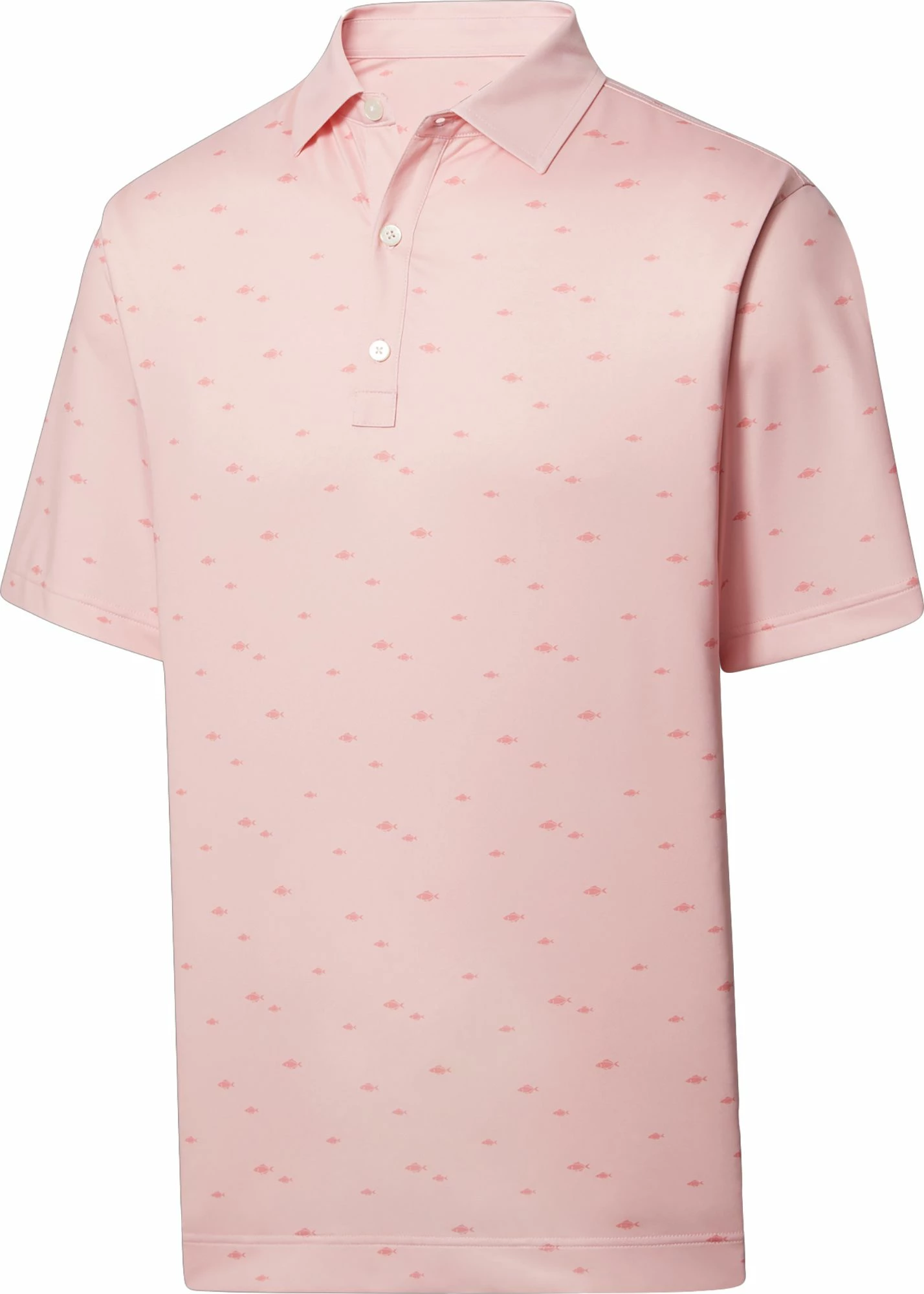 New ⭐ FootJoy Men’s School Of Fish Print Lisle Self Collar Golf Polo For Men Pink ⭐