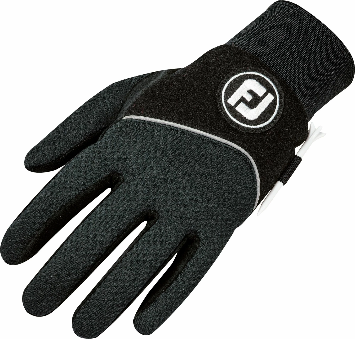 When cold weather strikes, play on while wearing FootJoy WinterSof Golf Gloves. Constructed of waterproof Weather-Shield foam fleece, WinterSof Golf Gloves feature proven Sure-Grip Autosuede knit palms to create a blend of protection and performance in any conditions. A Weather-Shield knit cuff locks in warmth and blocks out cold for greater comfort. Highly-reflective piping adds visibility, which an easy-access tee holder minimizes hassle.