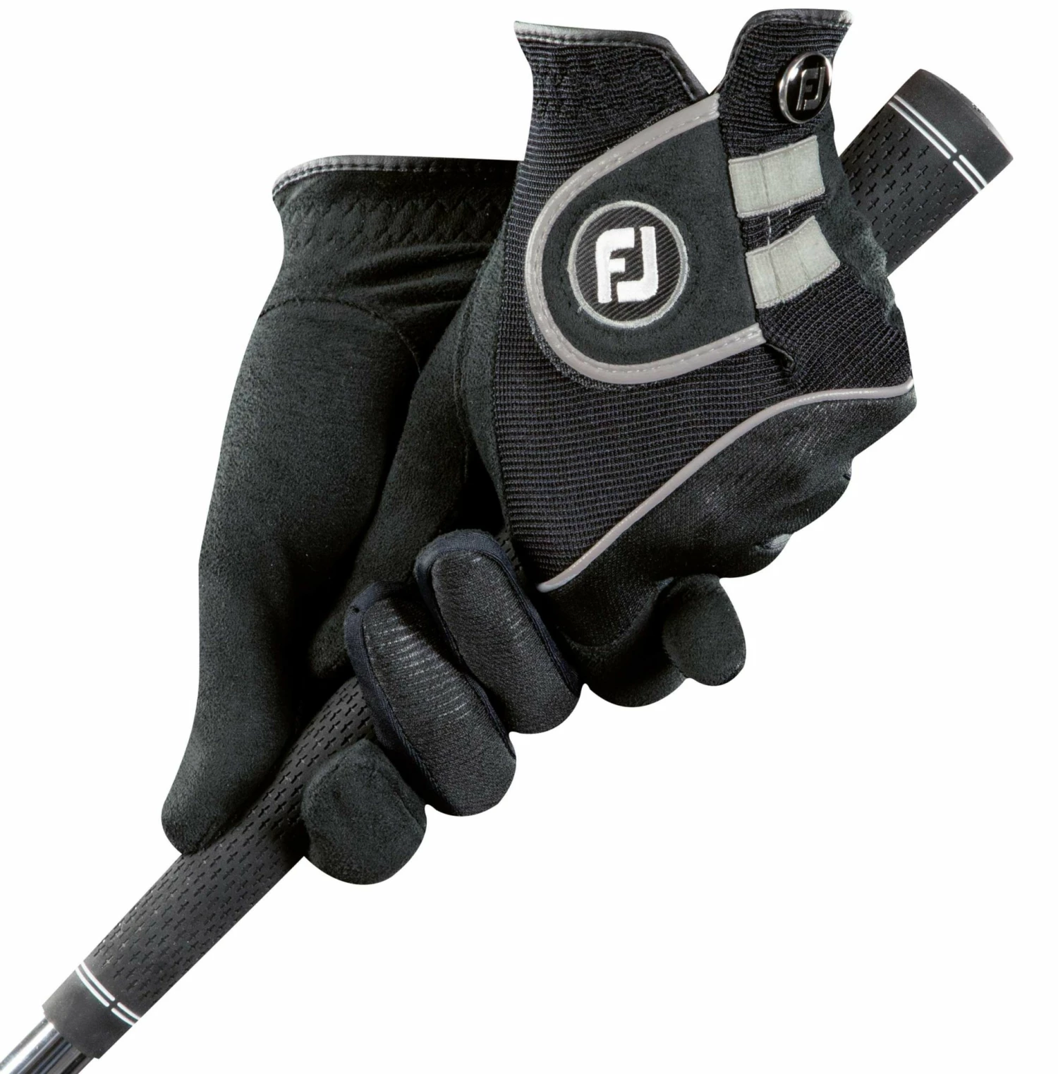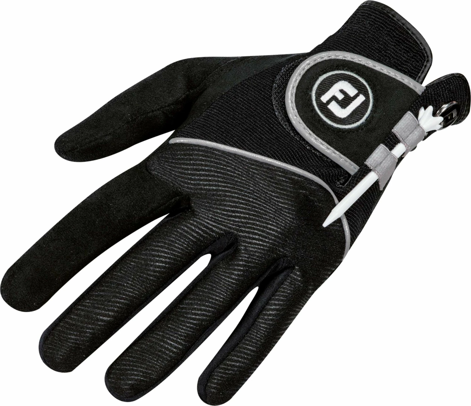 Rely on the most trusted name in rain gloves by using FootJoy® RainGrip Golf Gloves. Essential for rain-ready play, this pair of golf gloves features Sure-Grip™ Autosuede™ knit palms to ensure maximum grip traction in adverse conditions. QuikDry™ knit material on the back hand and fingers accelerates they drying process for maximum comfort. Angled, dual-elastic tab closures deliver a secure, customizable fit as you play on.