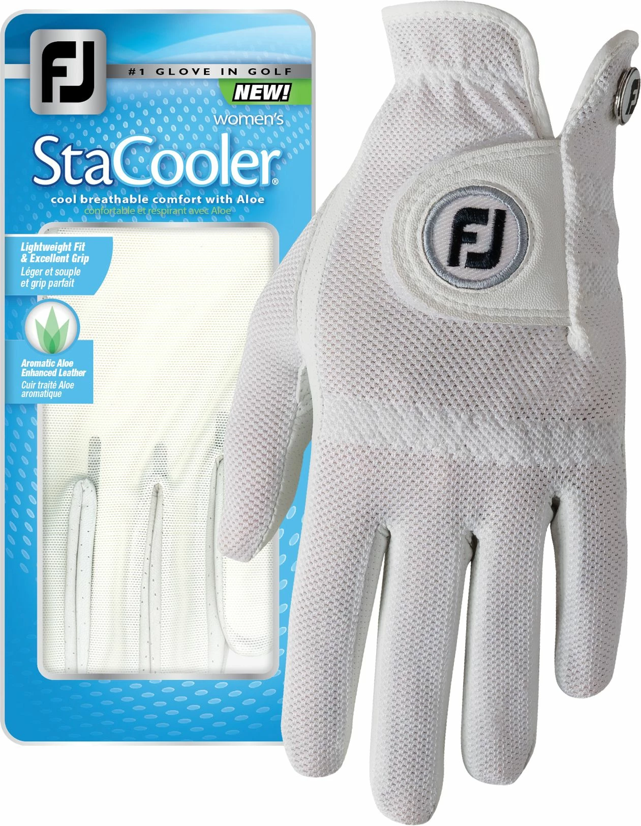 Maximize comfort and performance during warm-weather rounds with the 2014 StaCooler Golf Glove. Engineered for a cool, customized fit, this glove features a soft aloe vera leather palm and breathable PowerNet mesh across the knuckles for superior feel. An angled tab closure with hook-and-loop technology provides a fast, secure fit through the swing. A removable ball marker gives the FootJoy® 2014 StaCooler Golf Glove remarkable functionality.