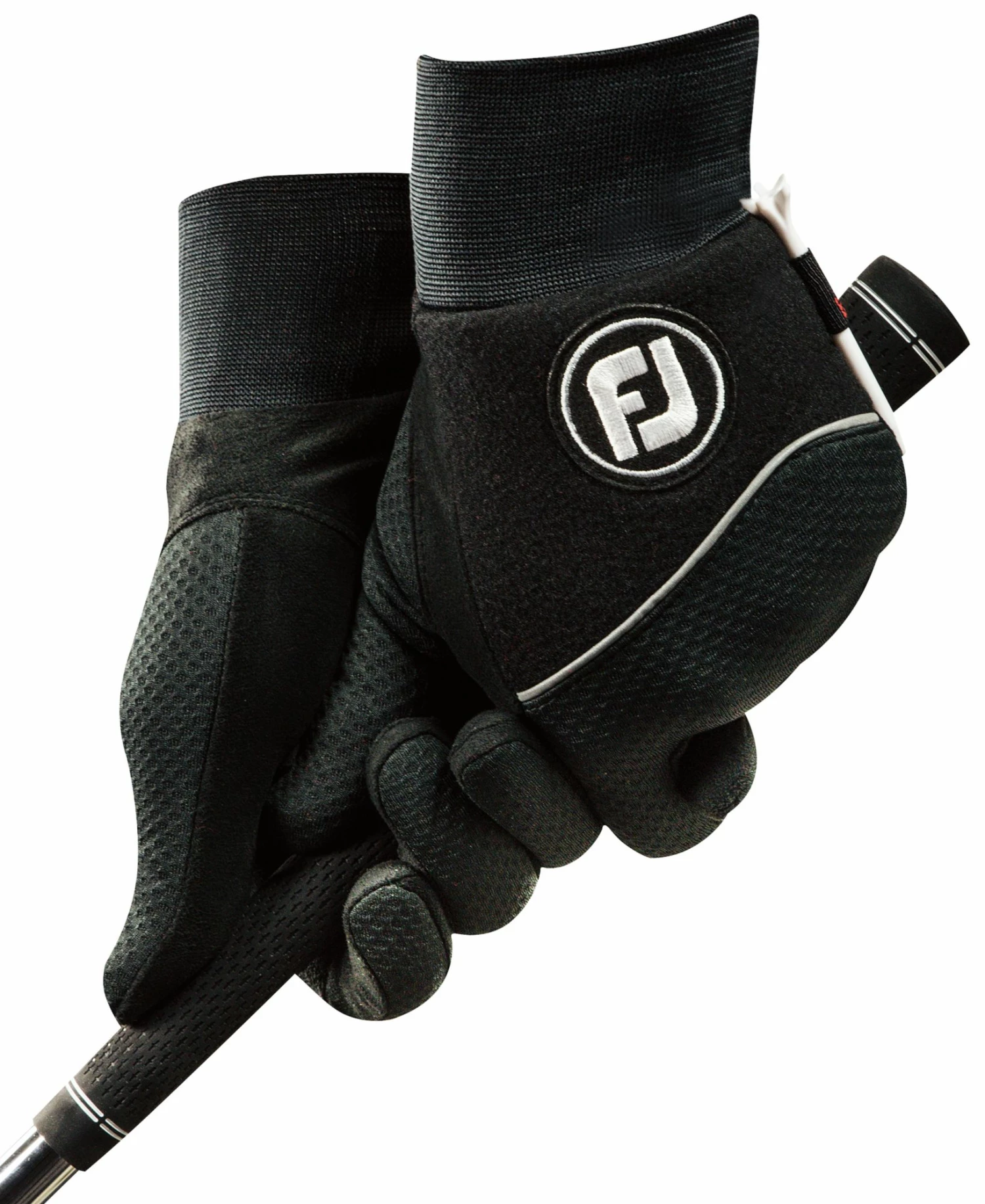 When cold weather strikes, play on while wearing FootJoy WinterSof Golf Gloves. Constructed of waterproof Weather-Shield foam fleece, WinterSof Golf Gloves feature proven Sure-Grip Autosuede knit palms to create a blend of protection and performance in any conditions. A Weather-Shield knit cuff locks in warmth and blocks out cold for greater comfort. Highly-reflective piping adds visibility, which an easy-access tee holder minimizes hassle.